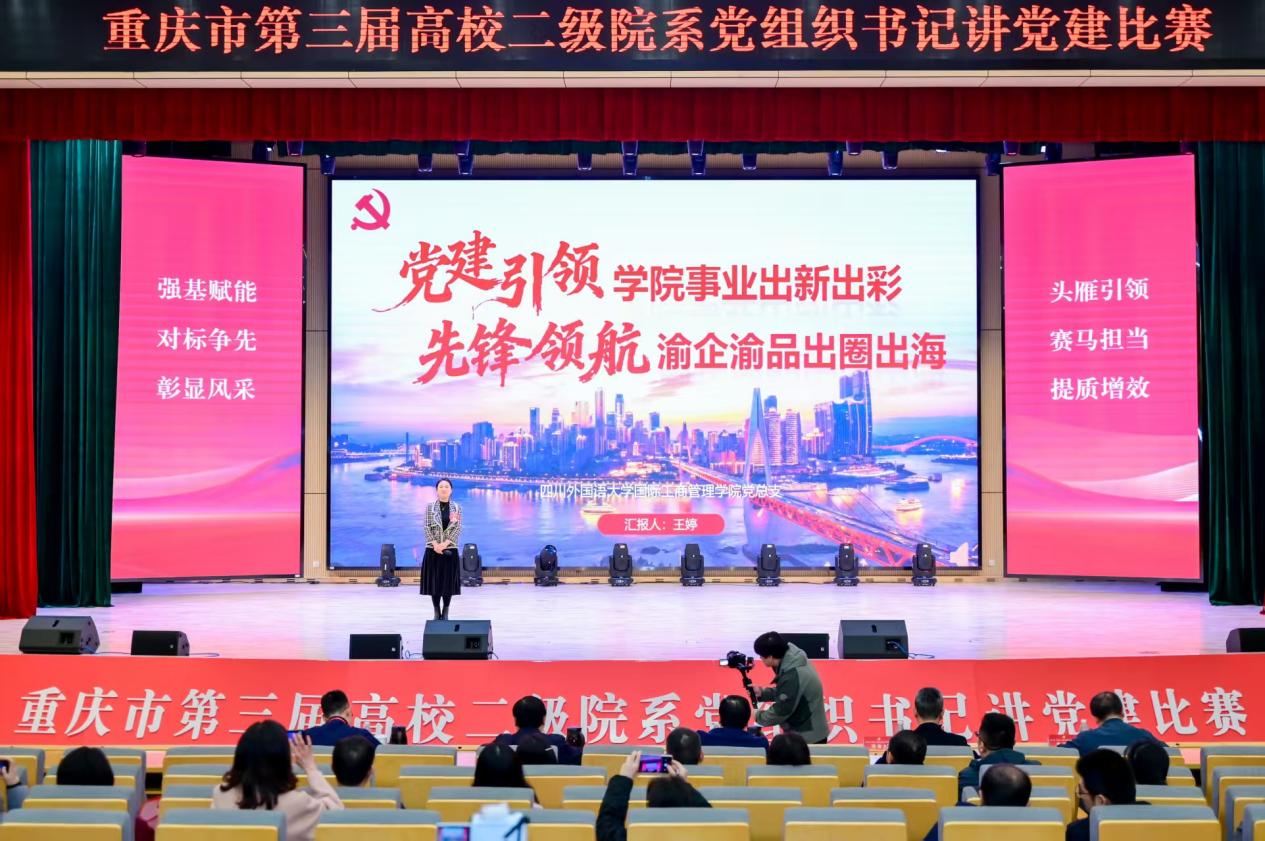为全面深入学习贯彻习近平新时代中国特色社会主义思想和党的二十届三中、四中全会精神,积极营造党建工作“赛马比拼”浓厚氛围,全面提升党组织书记队伍建设水平, 12月5日,由市委教育工委举办的重庆市第三届高校二级院系党组织书记讲党建比赛在重庆城市职业管理学院举行,经过激烈角逐,我校参赛代表、国际工商管理学院党总支书记王婷荣获三等奖。